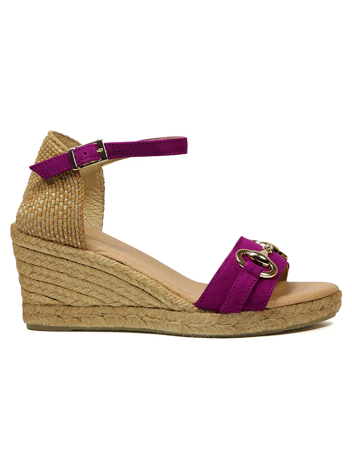 Fabricada con las mejores pieles, estas sandalias de esparto tienen suela de goma antideslizante y planta súper acolchadita. Su cuña mide 7,5 centímetros y su plataforma 2 centímetros. Además son súper sujetas con su hebilla al tobillo.