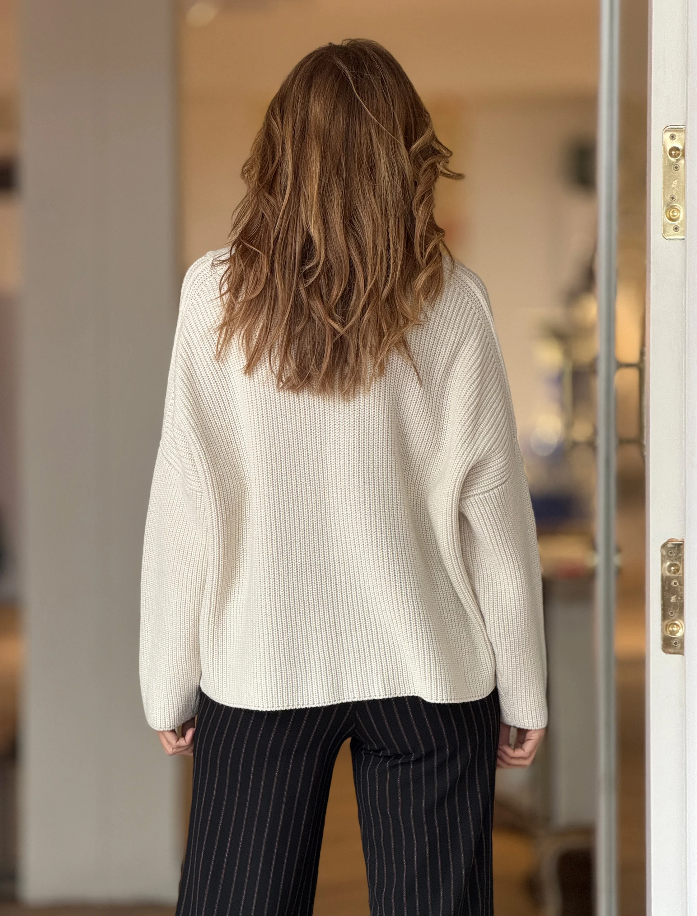 Jersey Fondo Chic tiene ese punto sencillo y elegante que te arregla el look. Es ideal para el día a día, pero queda igual de bien si lo llevas un poco más arreglado. Tiene escote en pico, que favorece muchísimo y estiliza, manga larga y un punto suave y gustoso. El corte es recto, perfecto para llevar con pantalones, vaqueros o incluso con falda. Es de esos jerséis que te pones mucho porque combina con todo y siempre queda bien.
