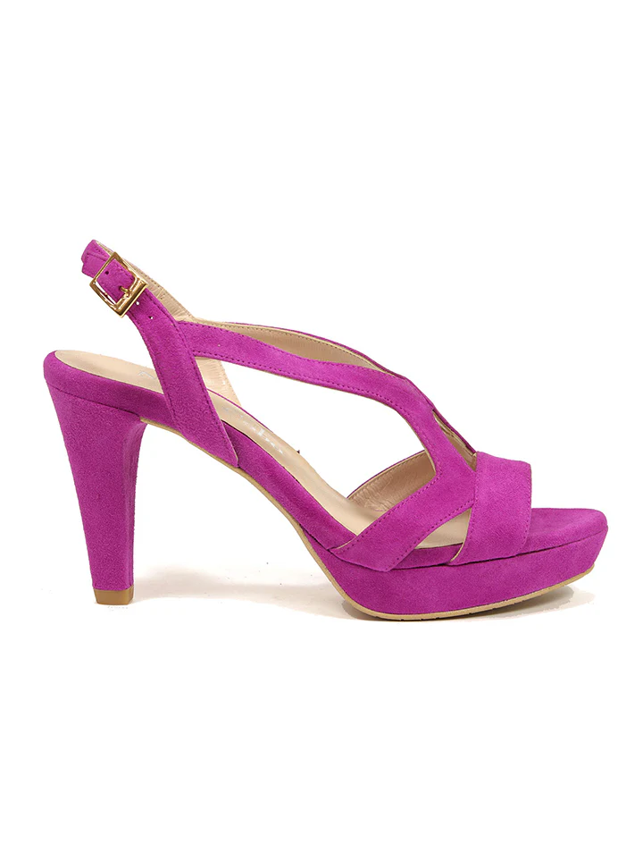 La sandalia Kenia buganvilla fabricada en pieles de primera calidad, sus tiras anchas y suaves sujetan el pie con firmeza y confort, adaptándose perfectamente al caminar. Incorpora planta acolchada y un tacón ancho de 10 cm, equilibrado con una plataforma de casi 3 cm, lo que aporta una gran estabilidad y hace que la altura se lleve con total naturalidad.
