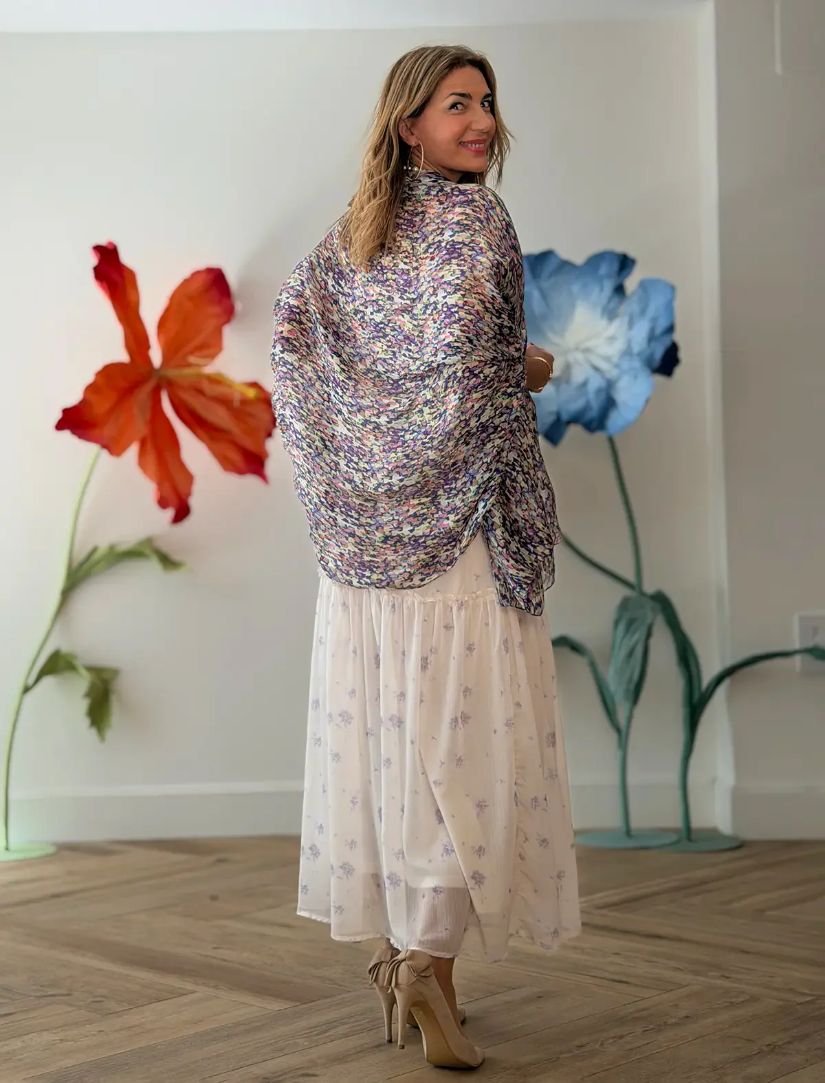 El pañuelo de seda estampado cashmere con un estampado de flores en tonos rosas, aporta elegancia y personalidad al instante. El tejido en seda tiene una caída fluida y ligera ideal para que lo lleves como chal o como capa ligera en entretiempo.
